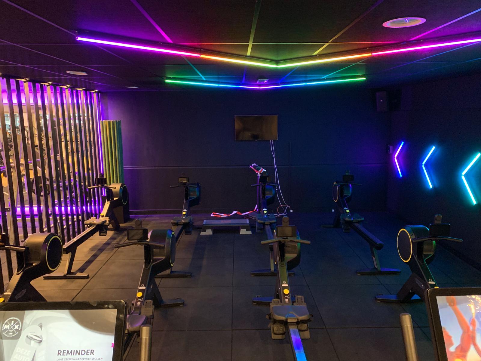 Voor deze veelzijdige club hebben wij een passend antwoord gecreëerd op de vraag; “Wij willen graag de horeca en fitness ruimte op de begane grond in verbinding brengen met de fitness ruimte in de kelder. Maar we hebben te maken met brandscheidingen van 60 minuten”. Dat dit nogal een intensieve ingreep zou worden, was direct duidelijk. De scope is direct wat groter gemaakt door ook direct de bestaande toilet- en douche gelegenheden aan te passen en te moderniseren. De glazen brandscheiding hebben wij gedemonteerd en een stalentrap geplaatst voor de verbinding. Om te blijven voldoen aan de 60 minuten brandeis, hebben wij automatische rolschermen geplaatst, aangesloten op het brandmeldsysteem. Deze gaan automatisch bij rook of brand naar beneden. Als randbeveiliging hebben wij strakke zwart gelakte hekwerken geplaatst met een RVS leuning. Een mooi, open en “verbindend” resultaat.